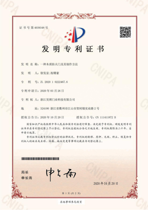 公司一直以來嚴(yán)格執(zhí)行ISO9001質(zhì)量體系和ISO14001環(huán)境管理體系標(biāo)準(zhǔn),建立了完備的科研、開發(fā)、生產(chǎn)、銷售服務(wù)體系。公司是浙江省門業(yè)協(xié)會會員單位,江山門業(yè)協(xié)會理事單位,中國木材與木制品流通協(xié)會會員單位,江山市消防協(xié)會副會長單位。